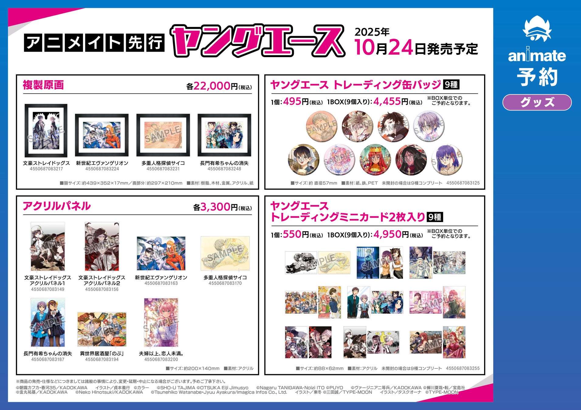 株式会社KADOKAWA(本社:東京都千代田区、 取締役 代表執行役社長 CEO:夏野剛)は「ヤングエース」の刊行15周年を記念し2025年10月24日~11月16日オンリーショップを開催いたします。