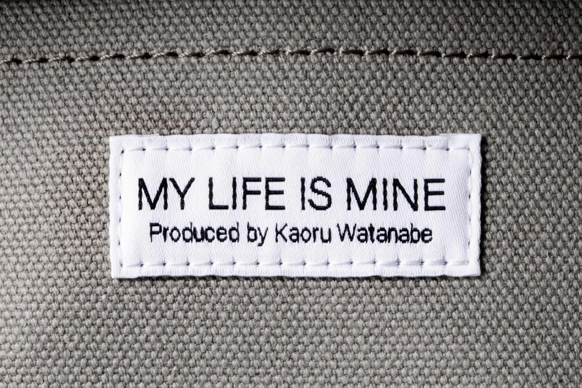 内側のポケットには「MY LIFE IS MINE」「Produced by Kaoru Watanabe」の織りネームが施されています。