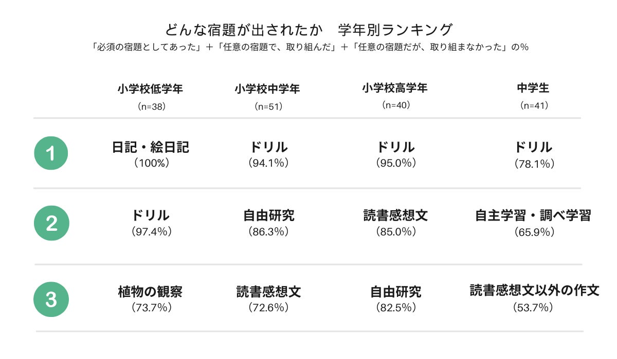 以上「夏休みの宿題について」アンケートの結果をご紹介しました。