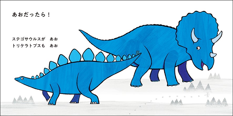 きみは、何色が好き? 赤かな? 青? 黄色? ピンク? その色の恐竜がいたら、どうかな?
