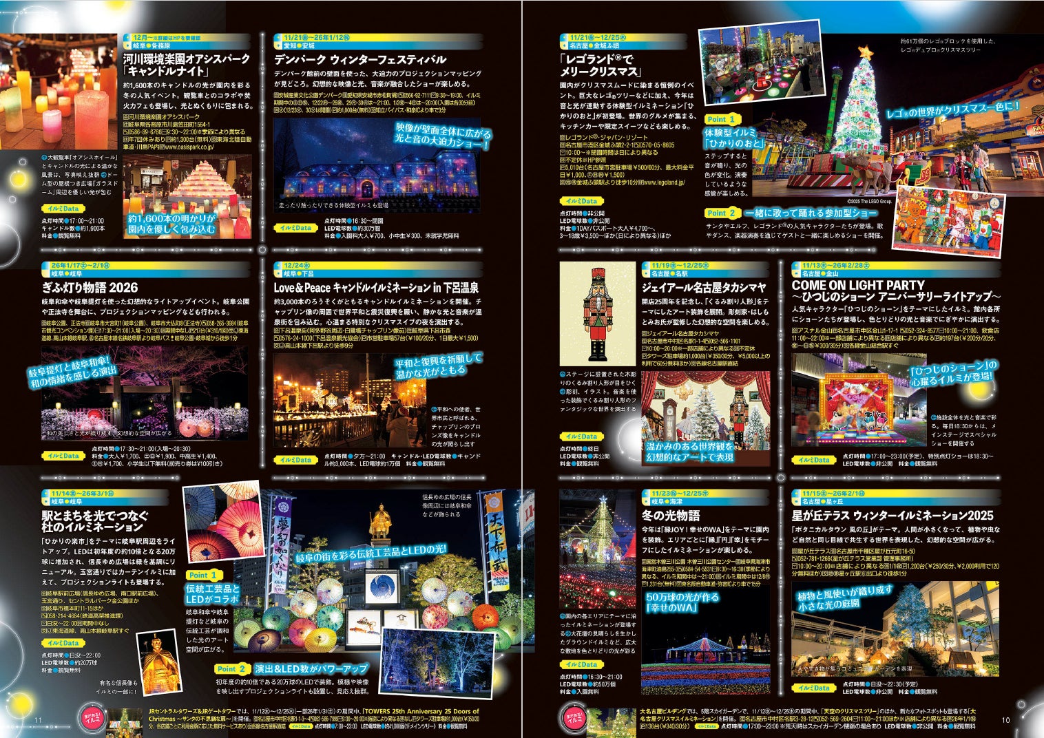 今回は、日帰りで名湯を巡る温泉ドライブを始め、忘新年会に使える新世代酒場や最新のイルミネーションなどを大特集。グルメやスーパー銭湯の割引クーポン企画など、お得に遊べる情報も満載です。翌2月まで使える保存版となっており、東海エリアを中心とした書店やコンビニ、ECサイトなどでお買い求めいただけます。本誌の主な内容は以下の通りです。