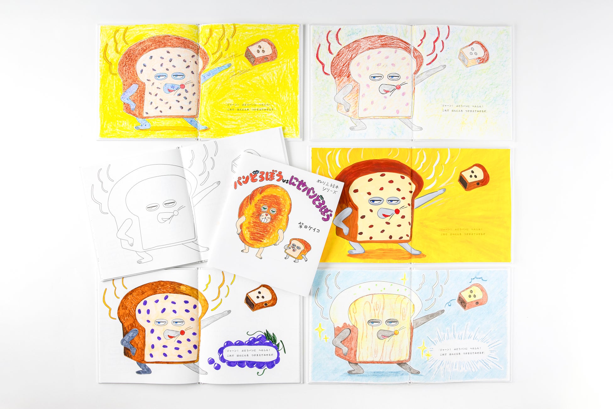 パンの焼き加減はあなた次第! おいしそうに塗るのも、まずそうに塗るのも、“ごじゆうにどうぞ”。世界に1冊だけの特別な絵本を作ることができます。プレゼントにもおすすめです。