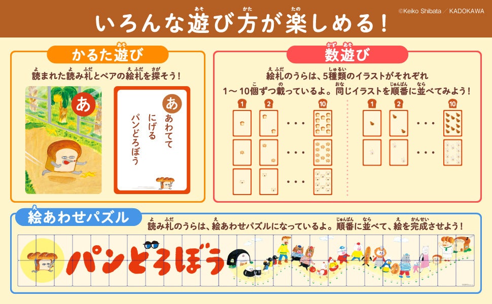 パンどろぼうの絵本のかわいいイラストや文が、楽しい「かるた」になりました。
