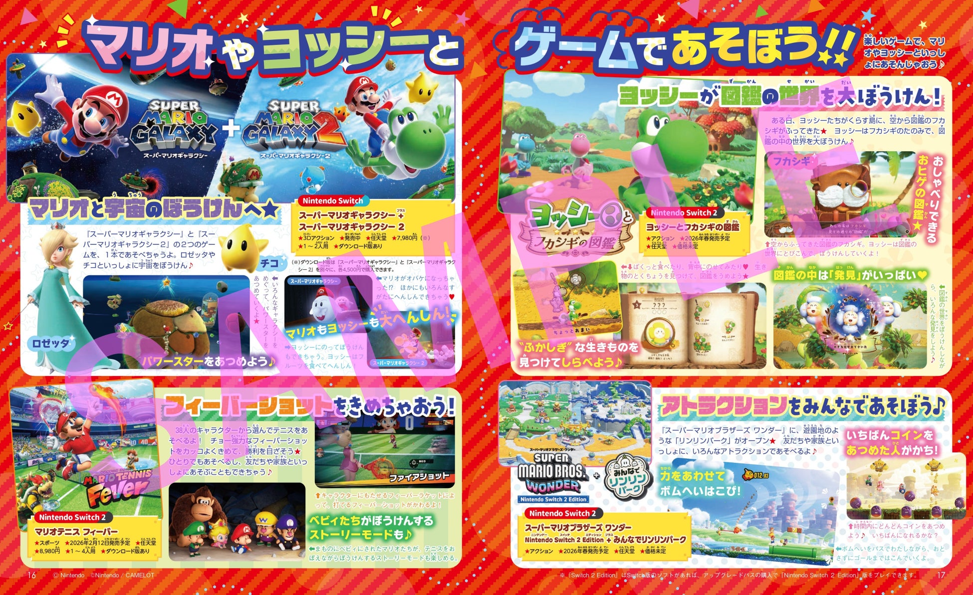 マリオやヨッシーといったお馴染みのキャラクターやNintendo Switch、Nintendo Switch 2など、最新ゲームの情報も紹介しています。