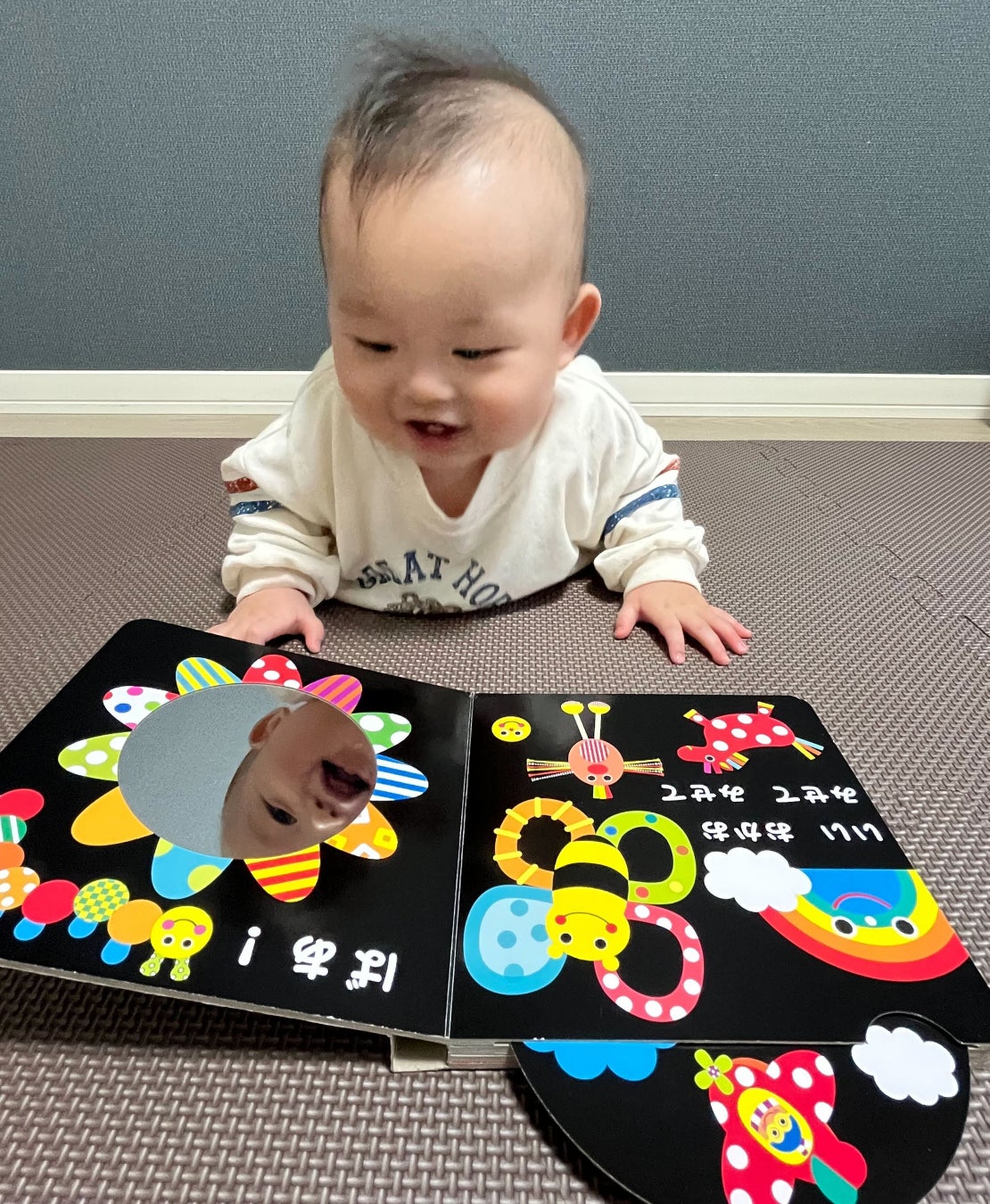 □赤ちゃんは鏡が大好き! お顔が映る大きなミラーつき