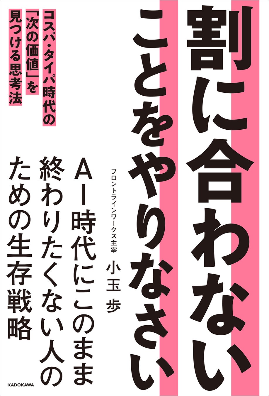 株式会社KADOKAWA(本社:東京都千代田区、取締役 代表執行役社長 CEO:夏野剛)は、2025年10月2日に刊行した小玉歩氏の最新刊『割に合わないことをやりなさい コスパ・タイパ時代の「次の価値」を見つける思考法』が、3刷(8,000部)の重版を決定したことをお知らせいたします。10月の2刷(8,000部)決定に続くもので、これにより累計発行部数は23,000部となります。