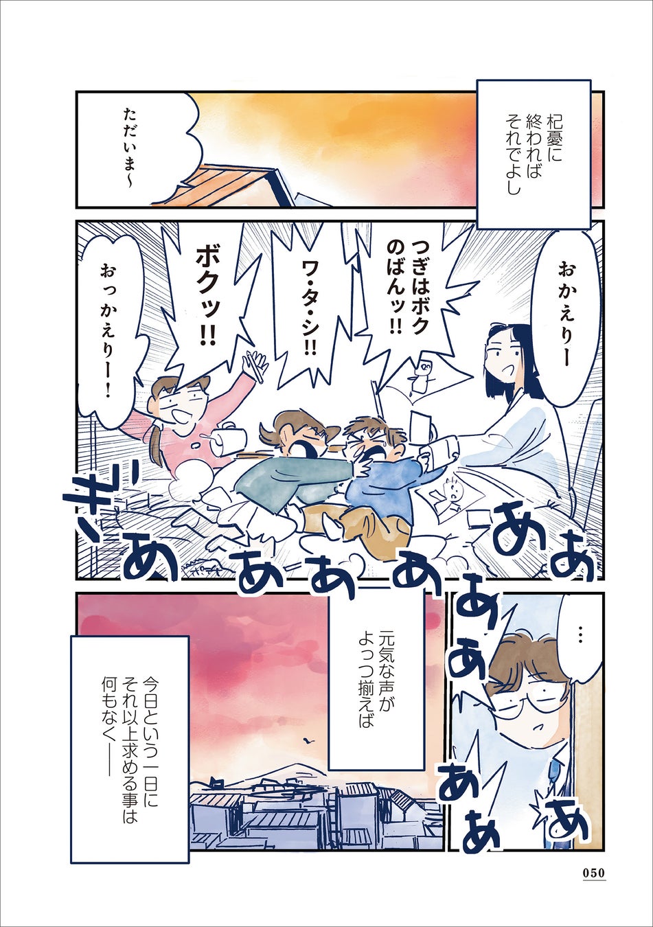 4人の子どもの父親でありサラリーマン。毎日の何気ない出来事を漫画に描いている。