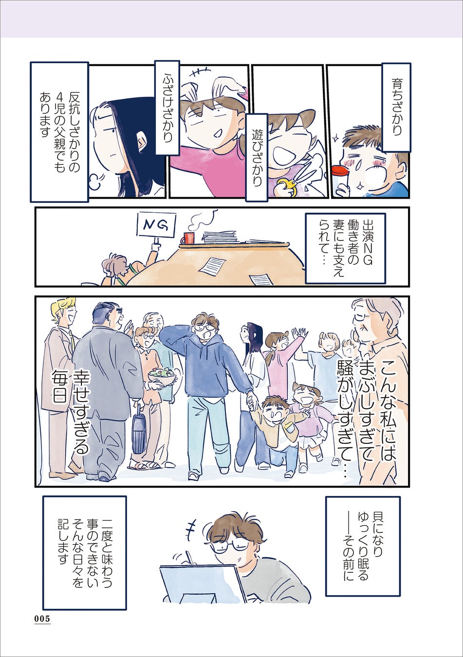 育児の苦労や葛藤を正直に描きながらも、4人の子どもたちとの小さな幸せをユーモアたっぷりに綴った共感必至のコミックエッセイです。