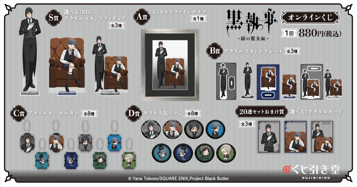 アニメ『黒執事 -緑の魔女編-』がくじ引き堂に登場! 新規描き下ろしイラストを使用した豪華賞品が盛りだくさん!!