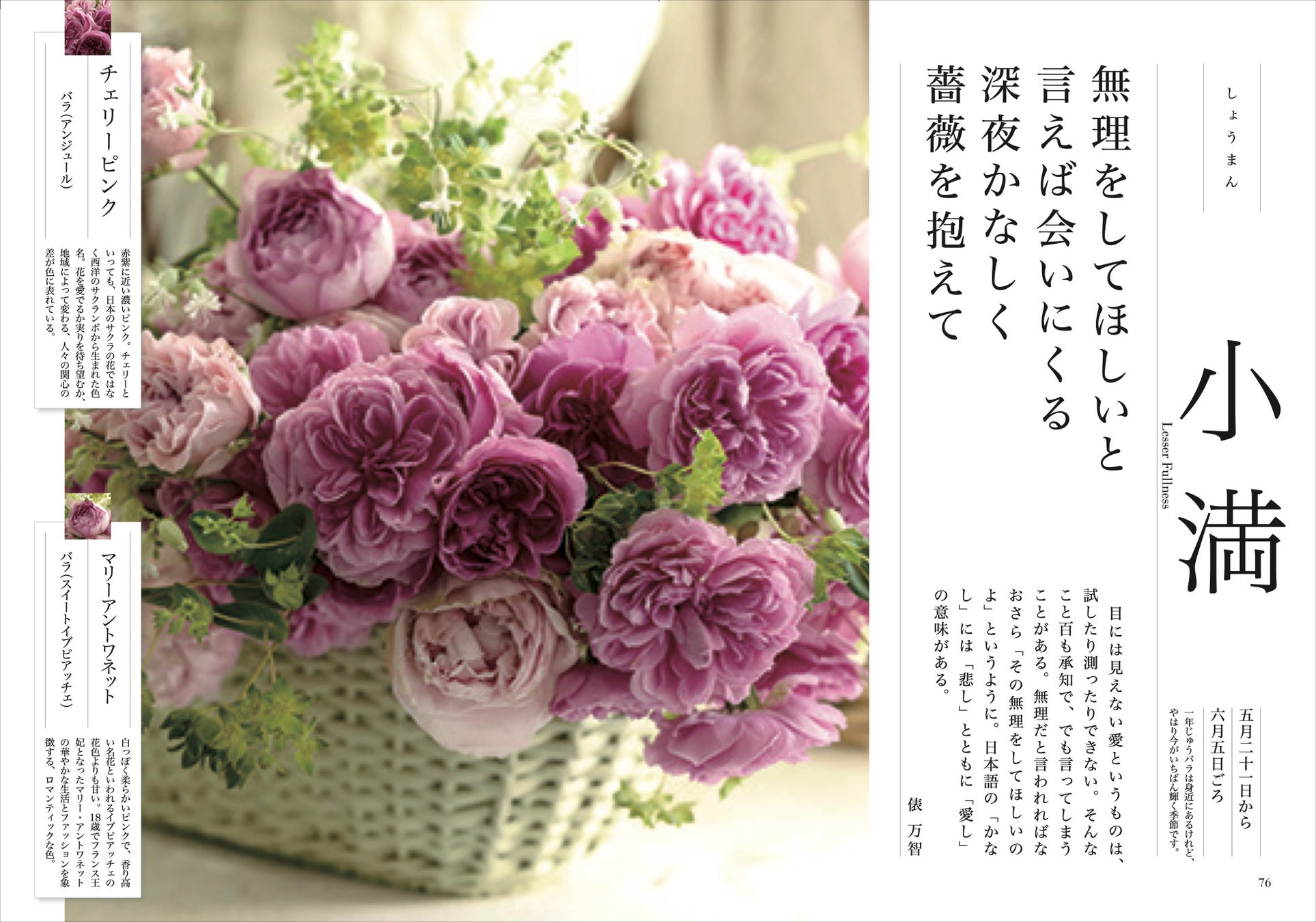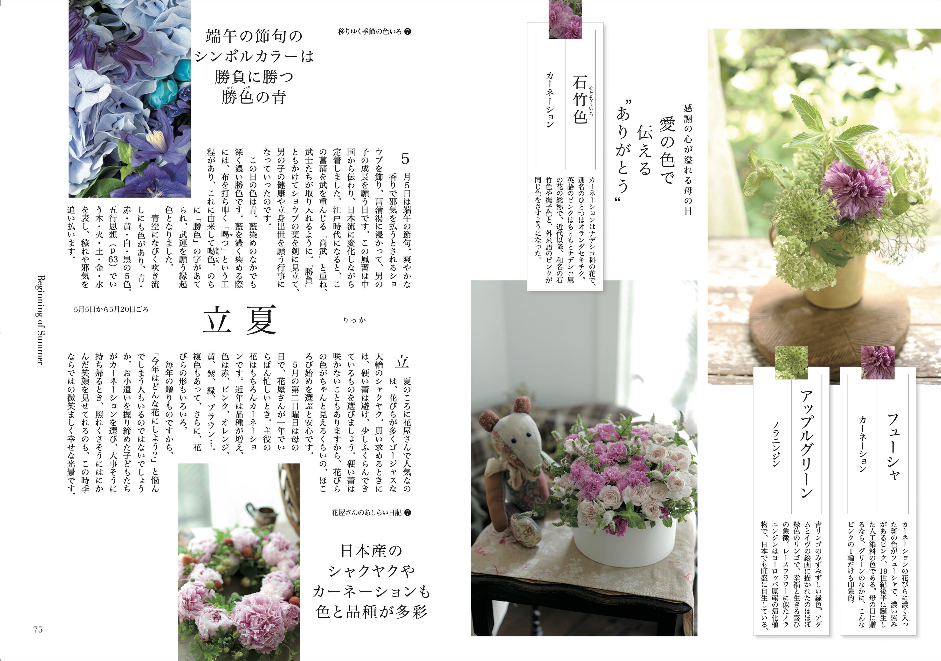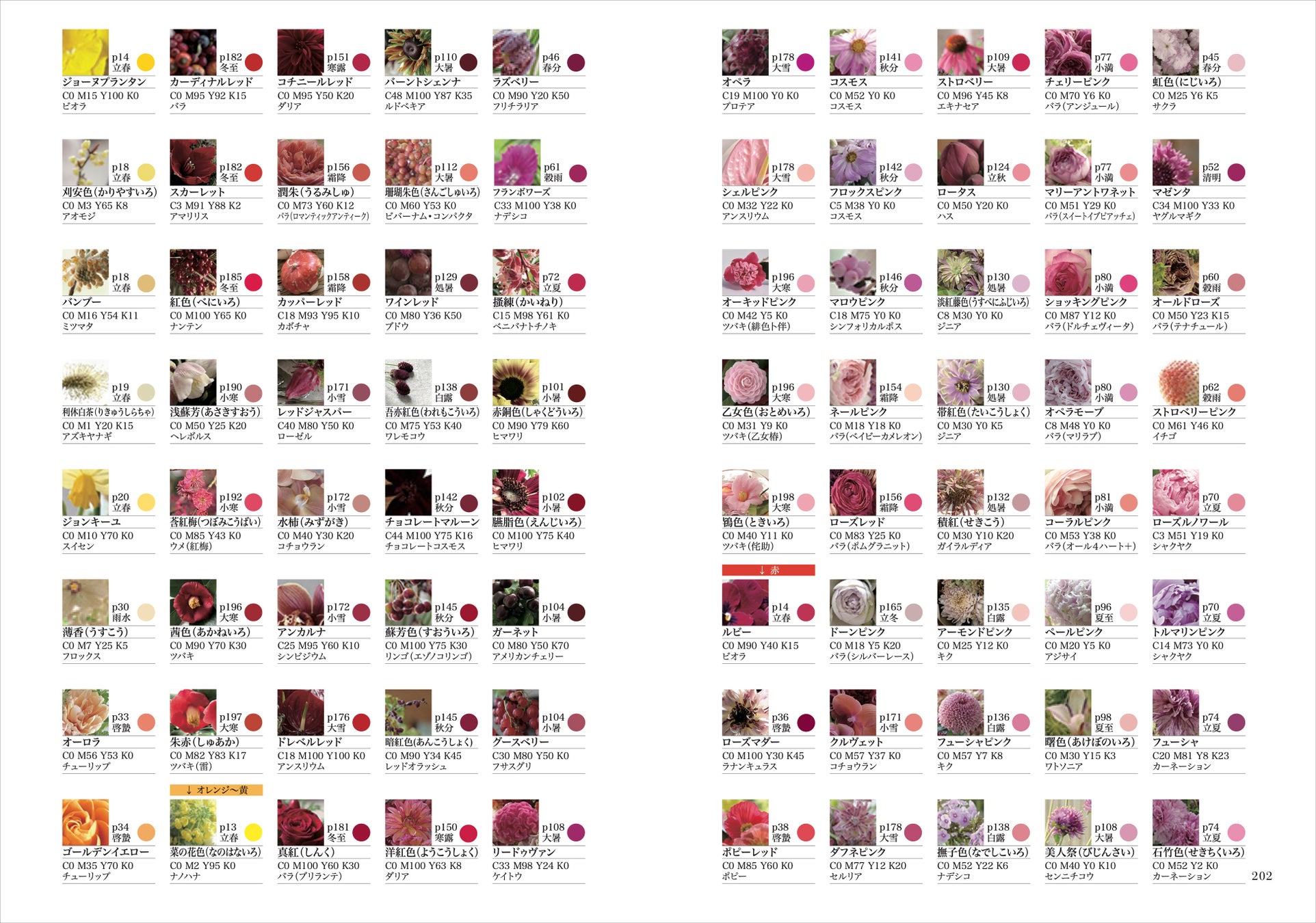 各節気の最後のページには、色と花のコラムを掲載。