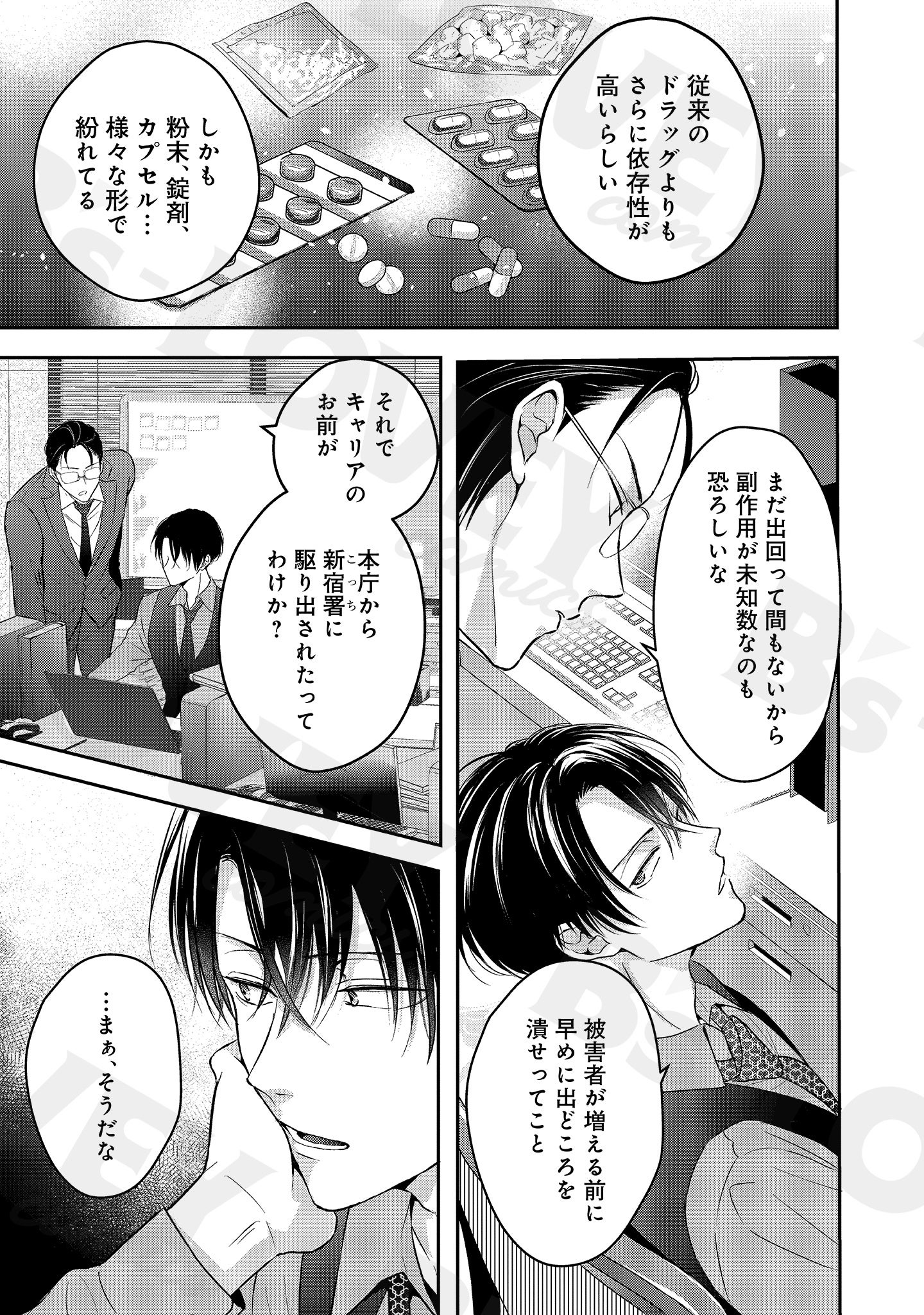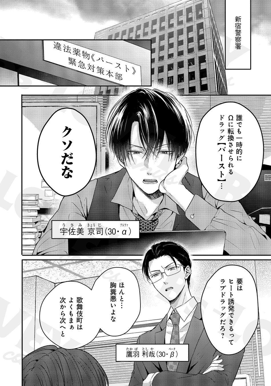 『イケないエリートΩは淫らにとろける』は、歌舞伎町に蔓延るラブドラッグを調査することになったエリート警察官・京司(α)が、かつて同棲していた元NO.1ホストのインフルエンサー・大我にコンタクトをとったところから始まるオメガバース×バディのBL作品です。