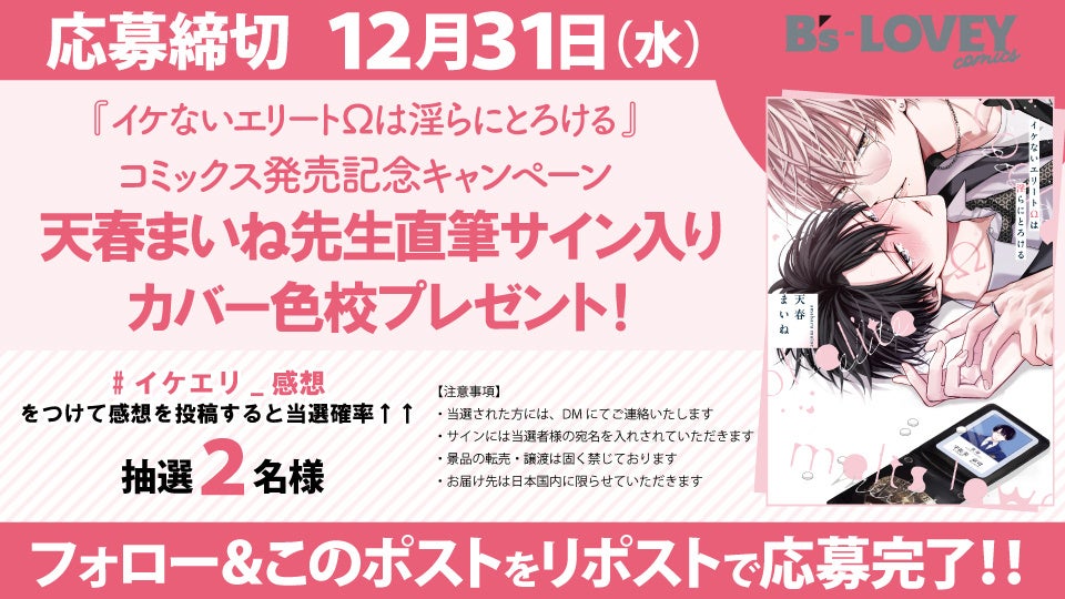 応募方法など、キャンペーンの詳細はB’s-LOVEY COMICS公式Xアカウント(https://x.com/BSLOVEY)にてご確認ください。