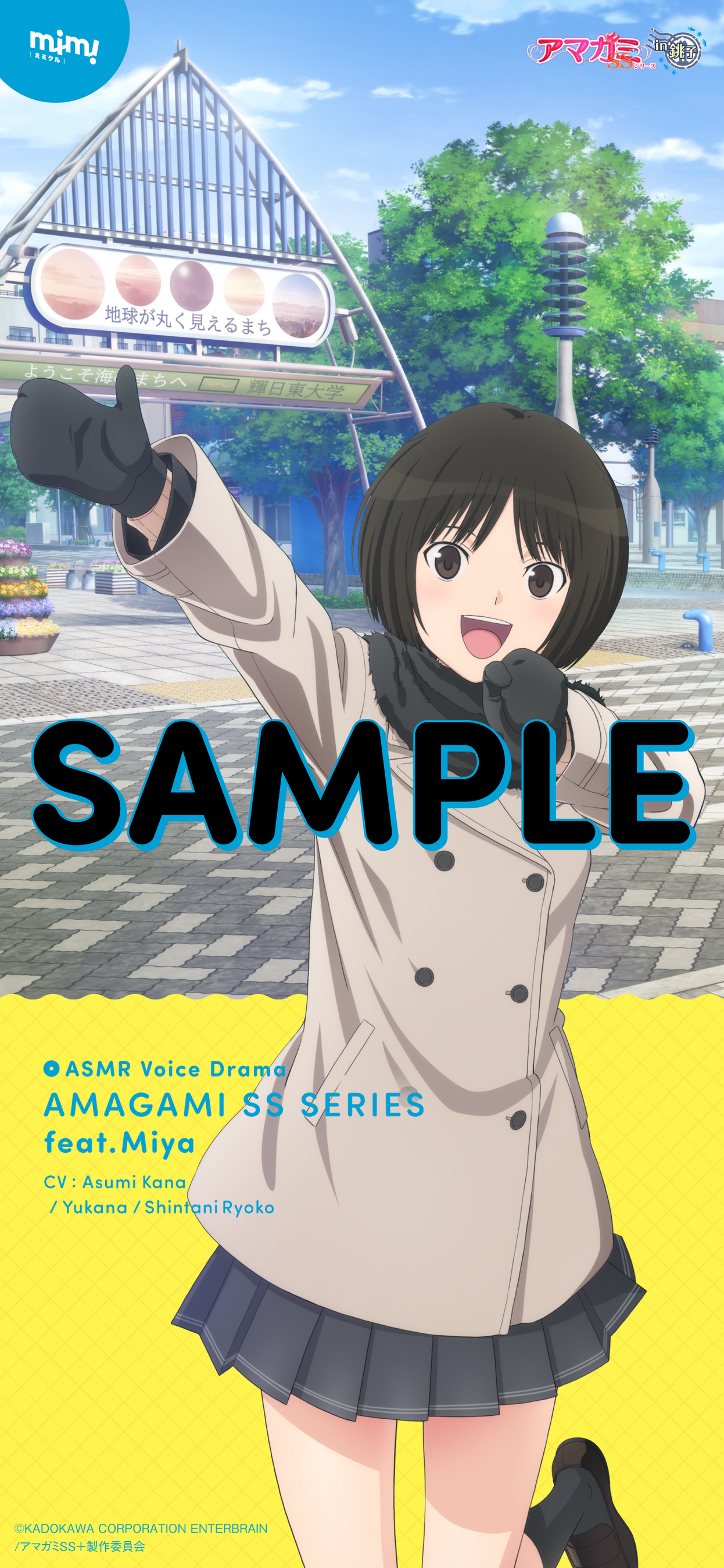 株式会社KADOKAWA(本社:東京都千代田区、代表取締役社長:夏野剛、以下 KADOKAWA)は、TVアニメ『アマガミSS』シリーズのASMRボイスドラマ『ASMRボイスドラマ アマガミSSシリーズ in 銚子 feat.美也』をボイスドラマ配信アプリ「mimicle(ミミクル)」にて、12/24(水)販売することをお知らせいたします。