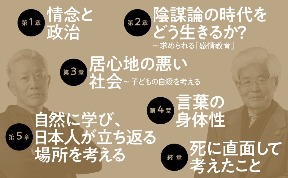 日本人と日本社会のあり方を観察し続けてきた二人の思想家が、長い年月で培った経験値と教養を発揮しながら行った本音トークを収録。政治の歪みと陰謀論、教育と子育て、言葉と身体性、中国と日本、自然と人間、病気や死との向き合い方まで縦横無尽に語り尽くした類を見ない教養書です。読者にとって、激動の令和ニッポンを生き抜く指針が満載です。