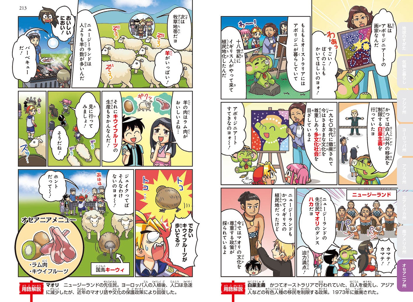 楽しく読み進めるうちに、気候、文化、各国の特色、時差といった地理の重要単元の理解が自然と深まります。