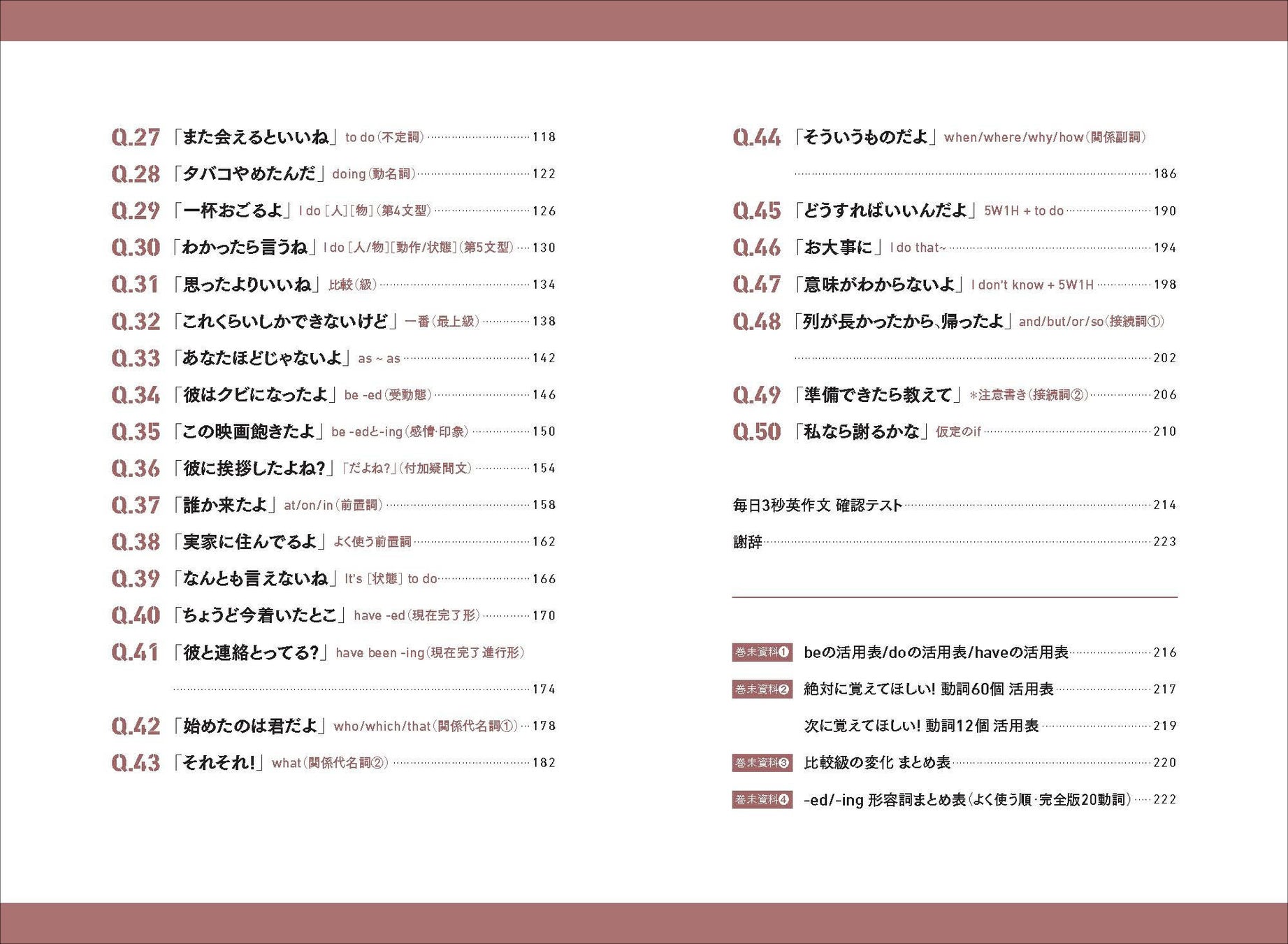 本書の目玉は、すなお先生による撮りおろし動画50本! 50テーマある文法の解説をそれぞれ1分以内のショート動画で紹介しているので、やる気が出ない日も英語学習を続けられます。さらに、赤シート付で例文を隠せるので、3秒以内に英語が出てくるまでくり返し取り組むことができます。