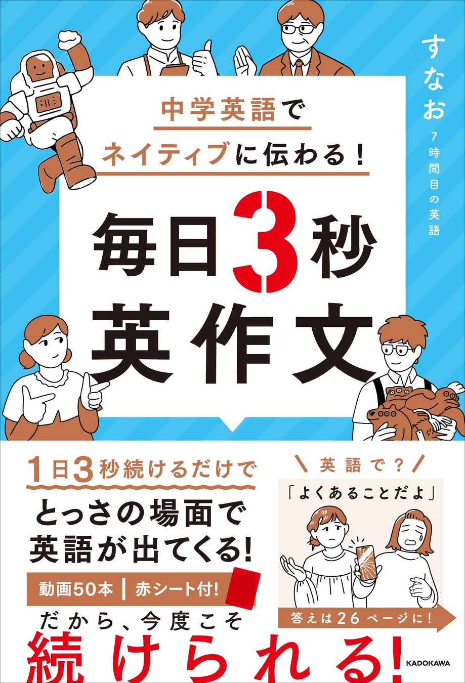 株式会社KADOKAWA(本社:東京都千代田区、取締役 代表執行役社長 CEO:夏野剛)は、『中学英語でネイティブに伝わる! 毎日3秒英作文』(著者:すなお 7時間目の英語)を2026年2月19日(木)に発売いたします。