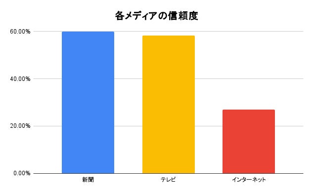 インターネット広告が増加しているにもかかわらず、ユーザーが情報源として信頼できると感じている割合は、全年代で「新聞」が59.9%、「テレビ」が58.2%であるのに対し、「インターネット」は27.0%と大きくそれらを下回りました。(総務省「令和6年度情報通信メディアの利用時間と情報行動に関する調査」)