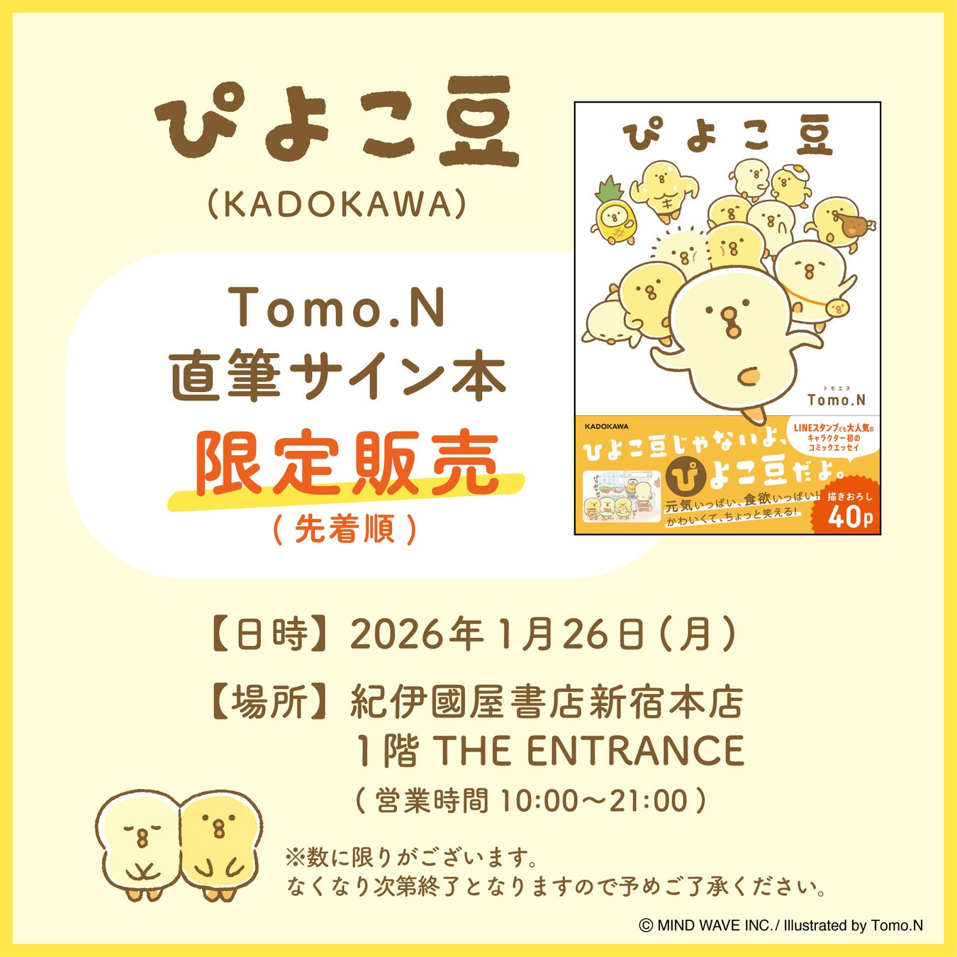『ぴよこ豆』直筆サイン本を紀伊國屋書店新宿本店にて販売決定!