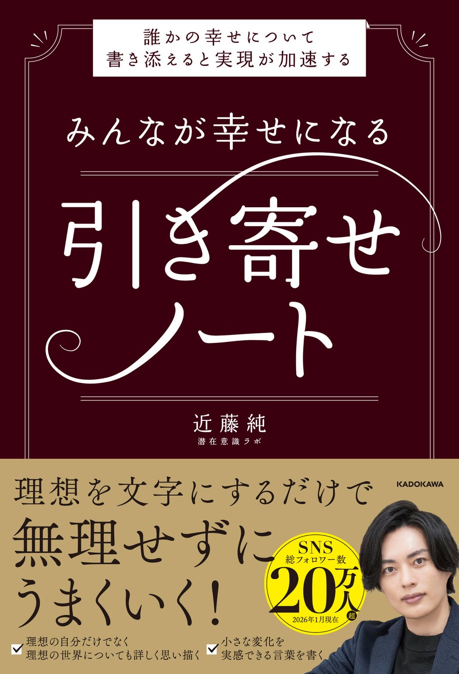 株式会社KADOKAWA(本社:東京都千代田区、取締役 代表執行役社長 CEO:夏野剛)は、『みんなが幸せになる引き寄せノート 誰かの幸せについて書き添えると実現が加速する』(著:近藤純)を2026年2月19日(木)に発売いたします。