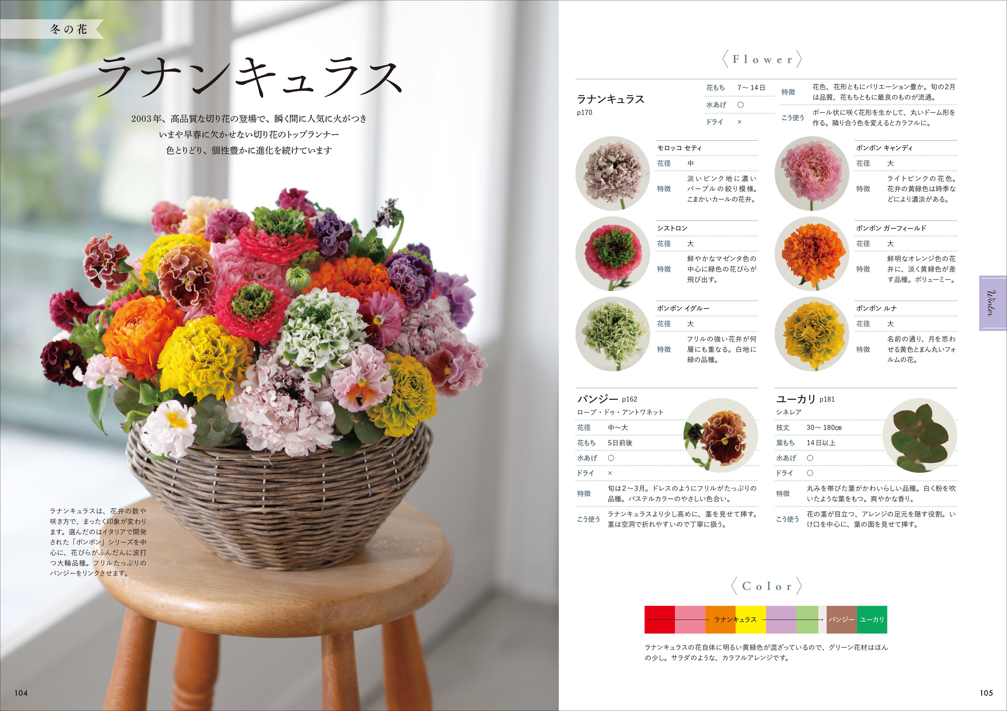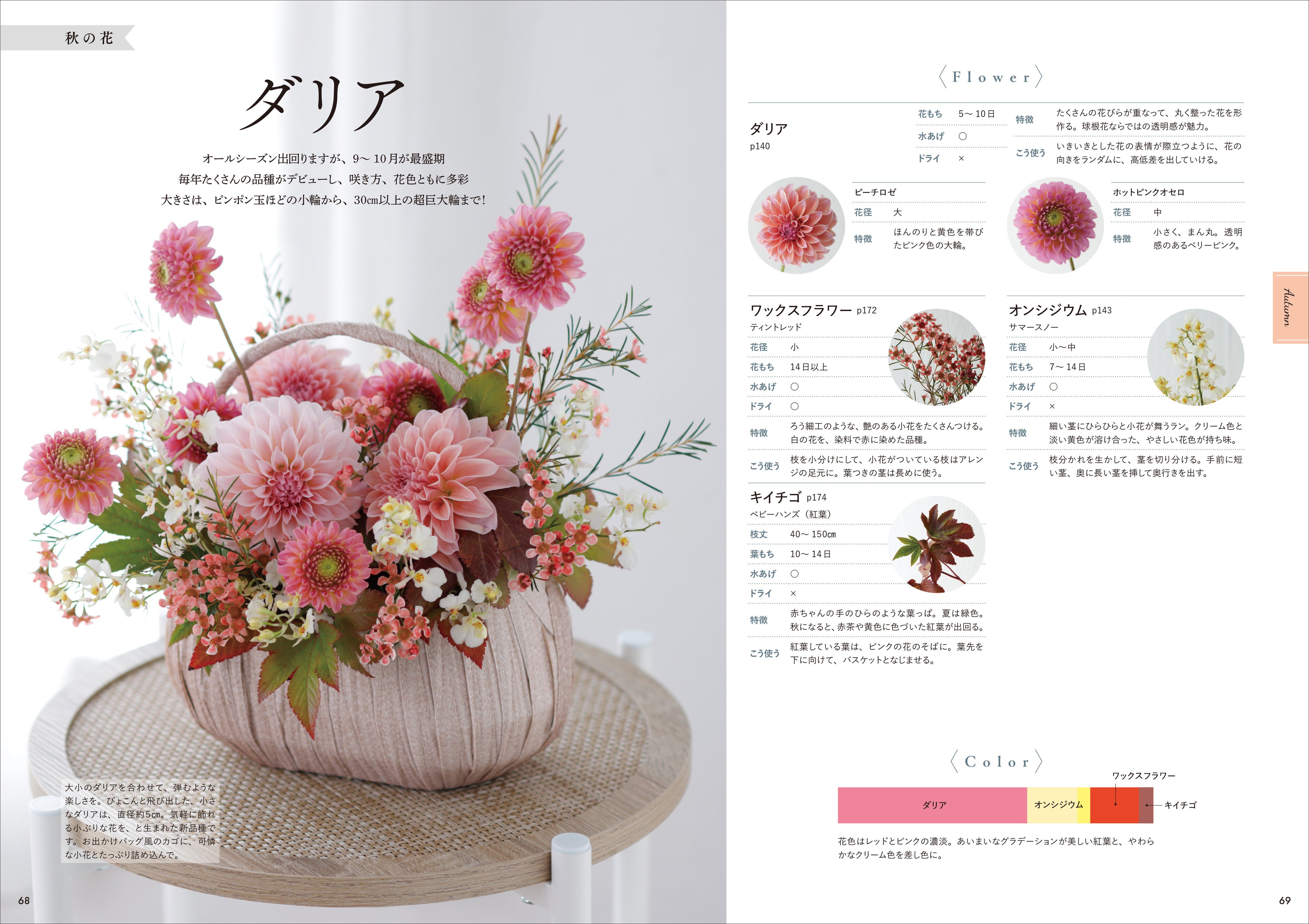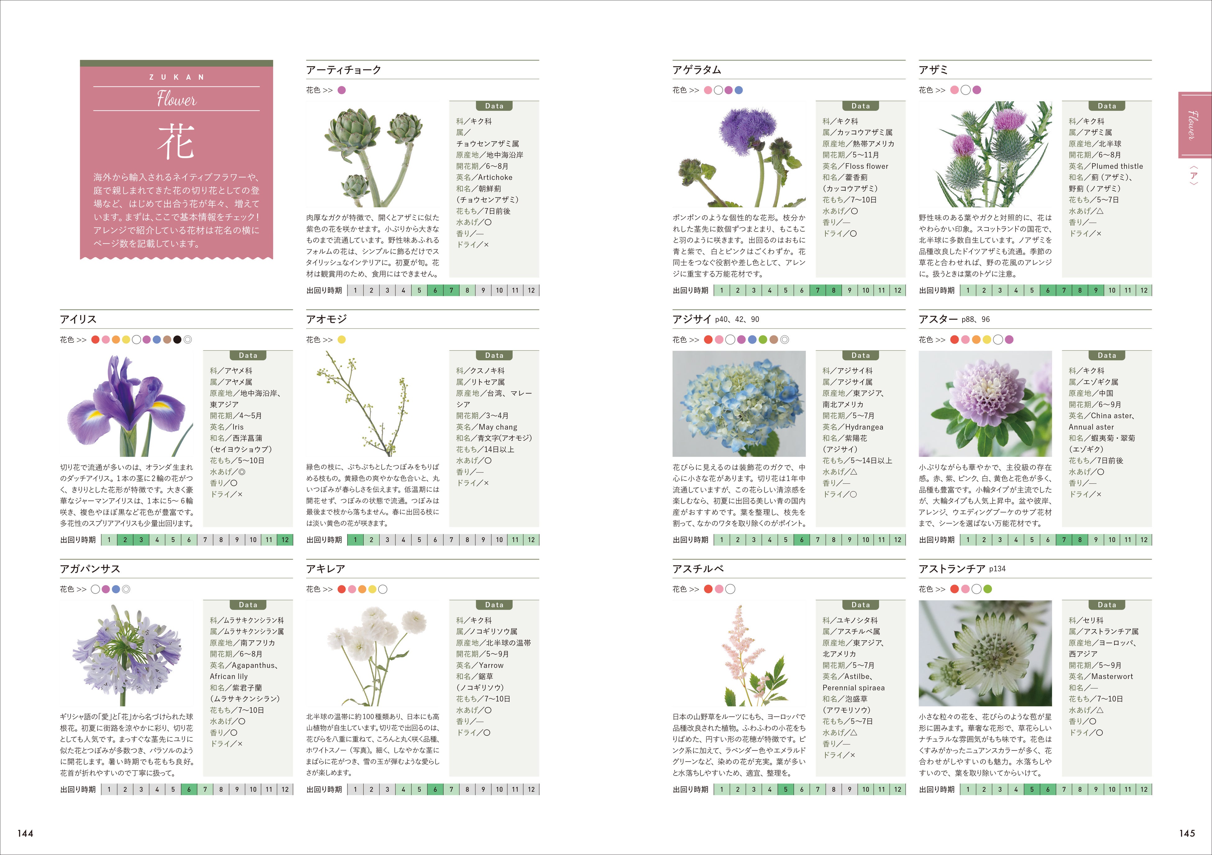 アレンジと図鑑がセットのページは、春夏秋冬に分けて展開します。