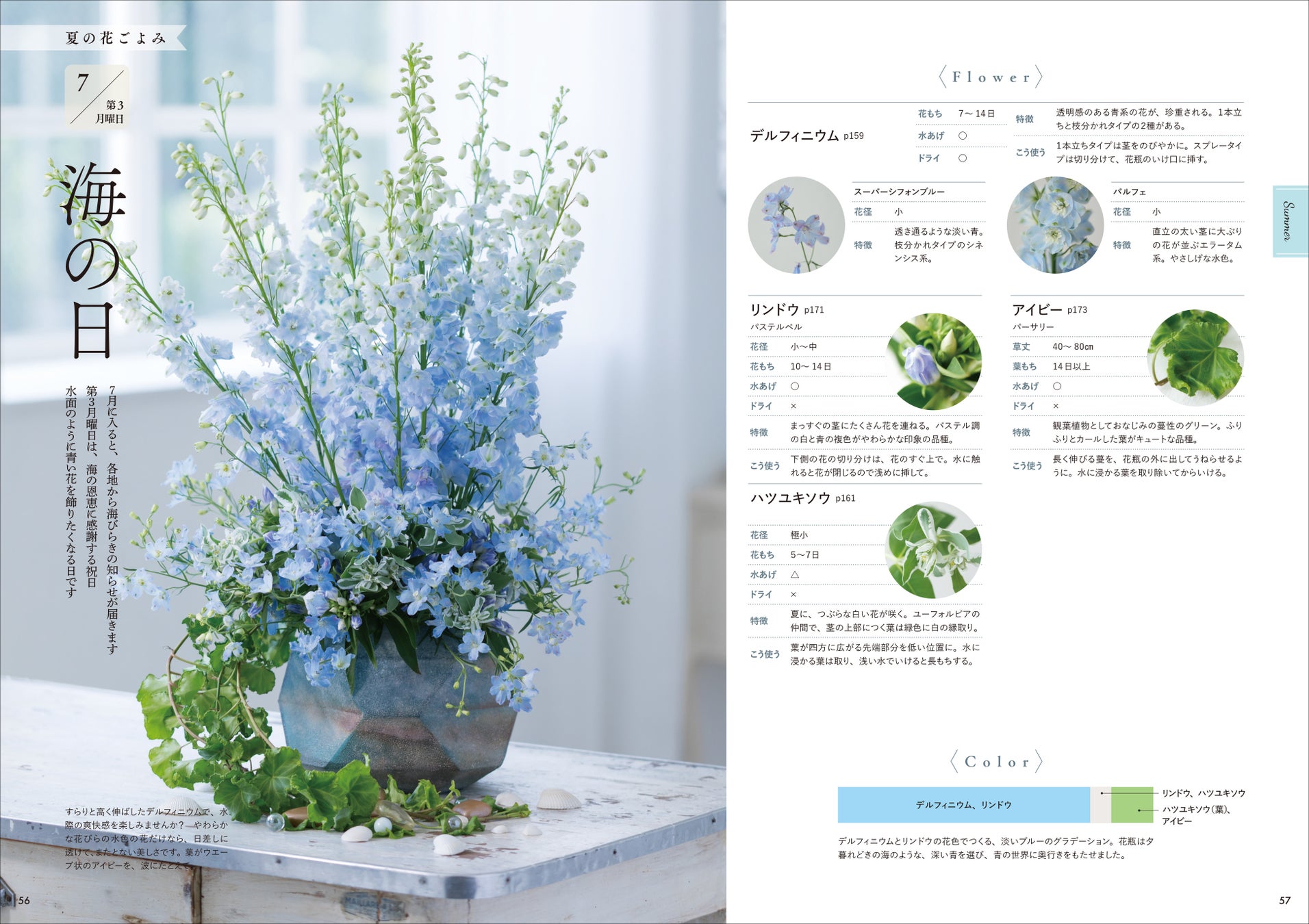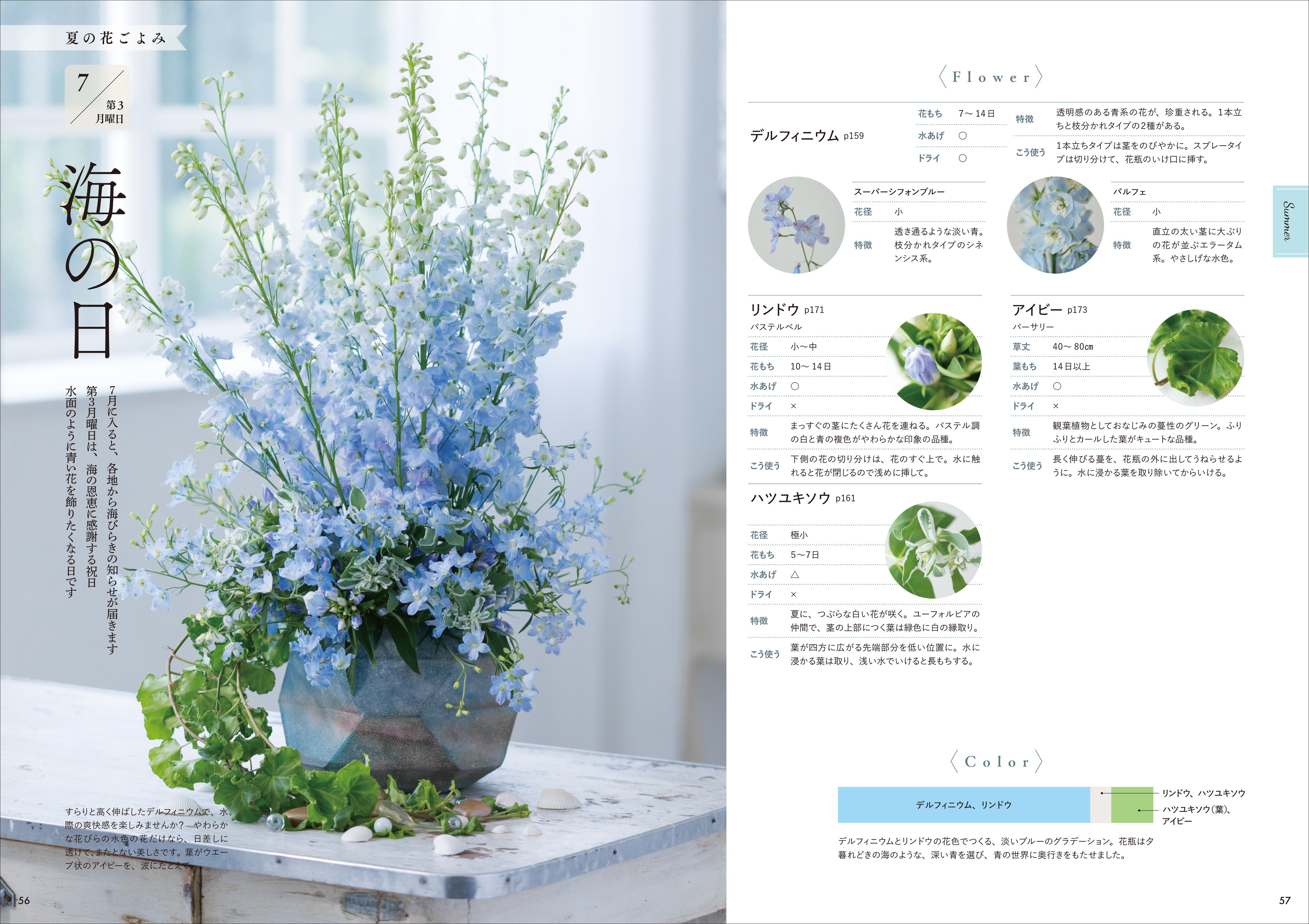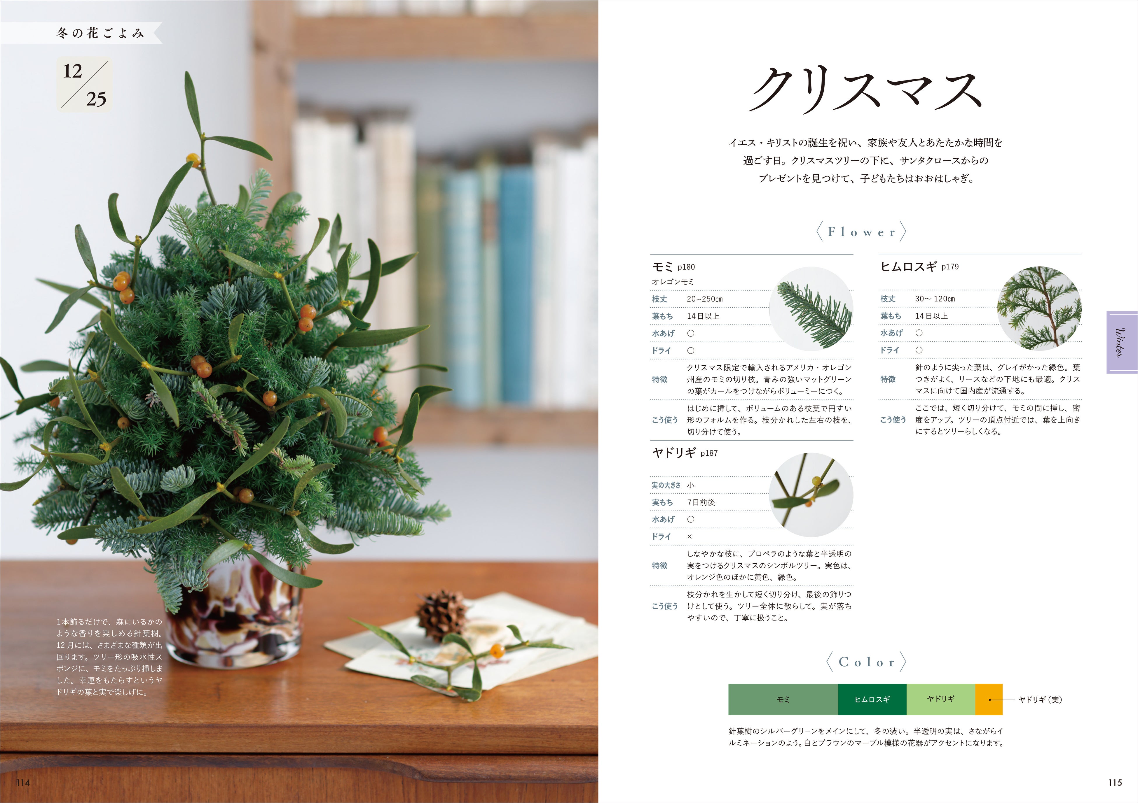 アレンジと図鑑がセットのページは、春夏秋冬に分けて展開します。