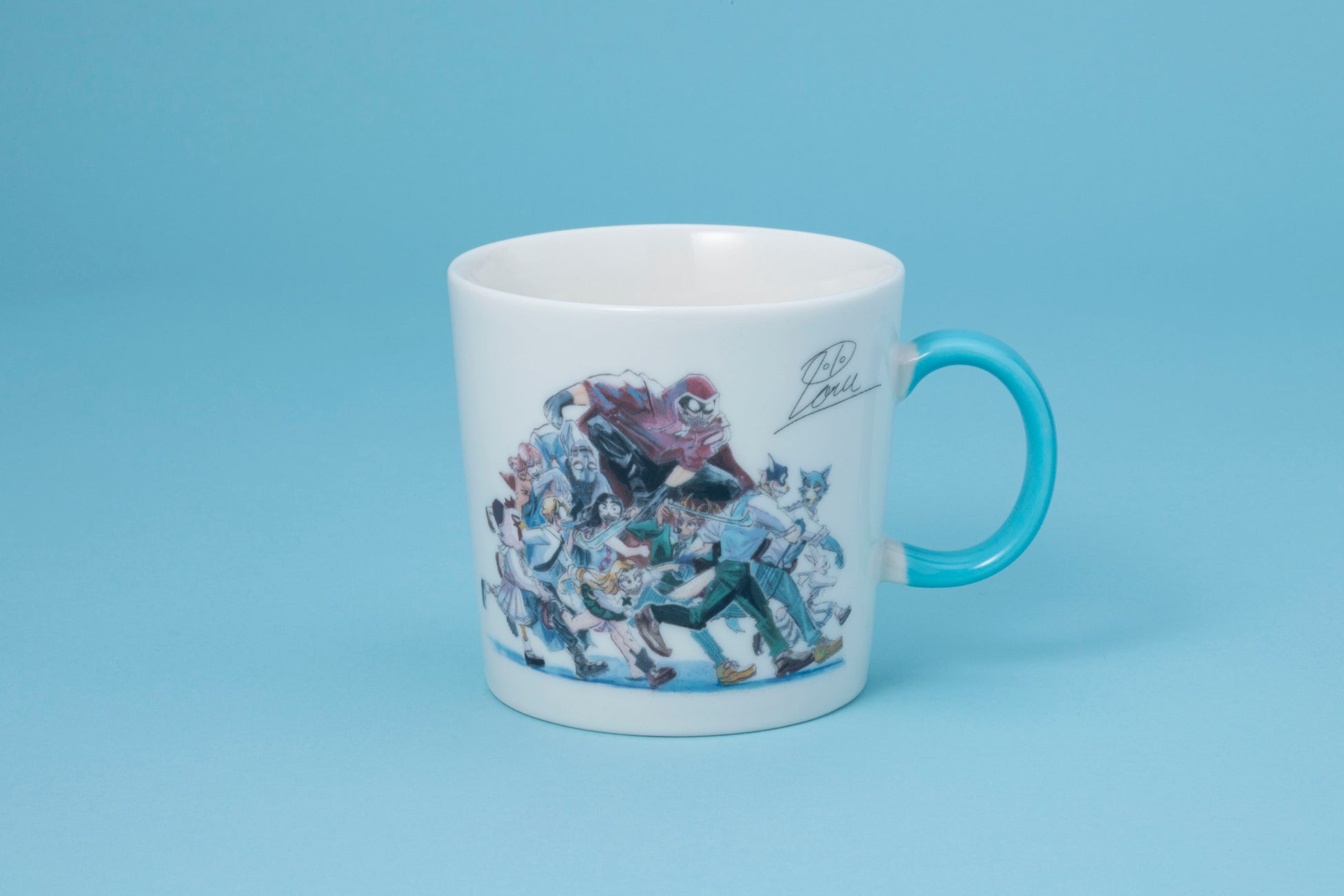 手持ち部分のターコイズがアクセントになった本展描きおろしイラスト使用のマグカップ。板垣巴留先生の複製サイン入り!
