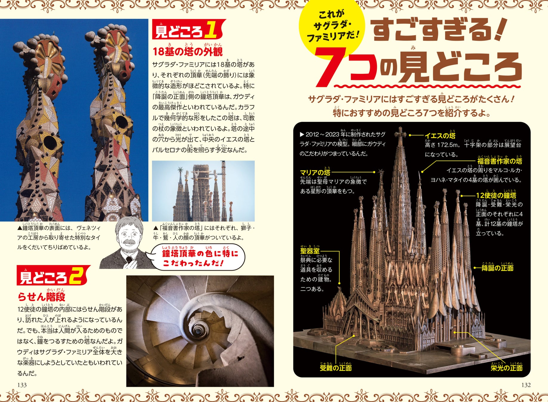 ▲巻末の記事ページはフルカラーで掲載! 世界から注目が集まる「サグラダ・ファミリア」の見どころやこれまでの建築の流れが楽しめる。