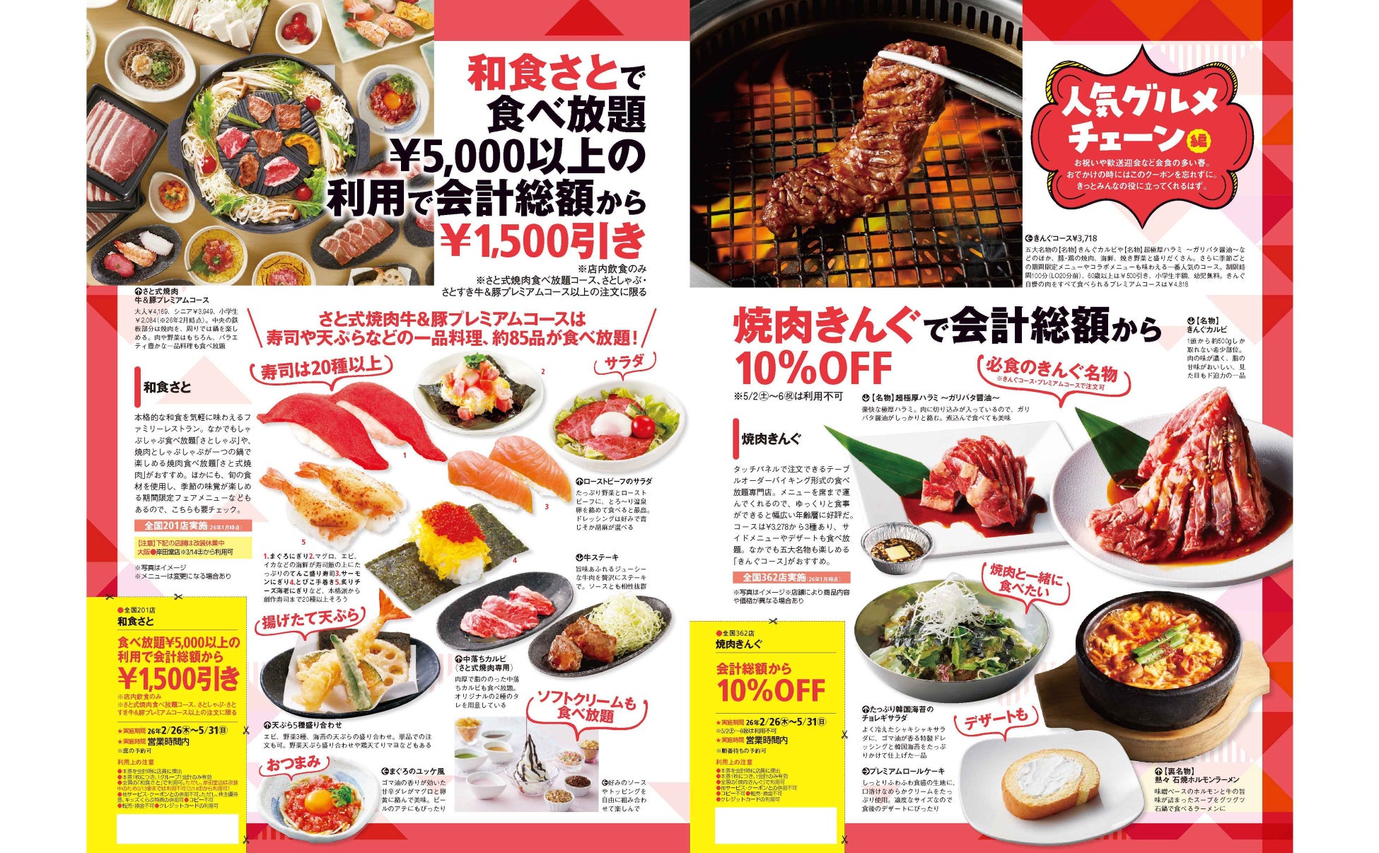・和食さとで「食べ放題¥5,000以上の利用で会計総額から¥1,500引き」