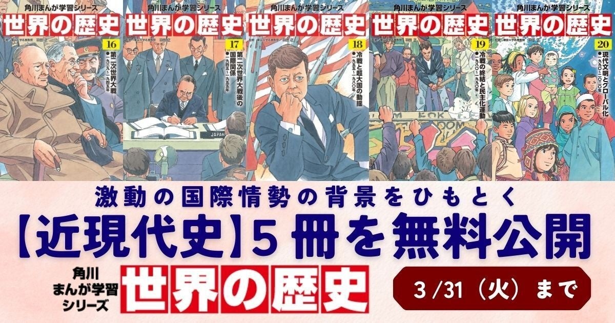 株式会社KADOKAWA(本社:東京都千代田区、取締役 代表執行役社長 CEO:夏野剛)は、角川まんが学習シリーズ『日本の歴史』『世界の歴史』の記事も含む全ページを収録した【電子完全版】の合本版を、2026年3月23日(月)から配信開始しました。