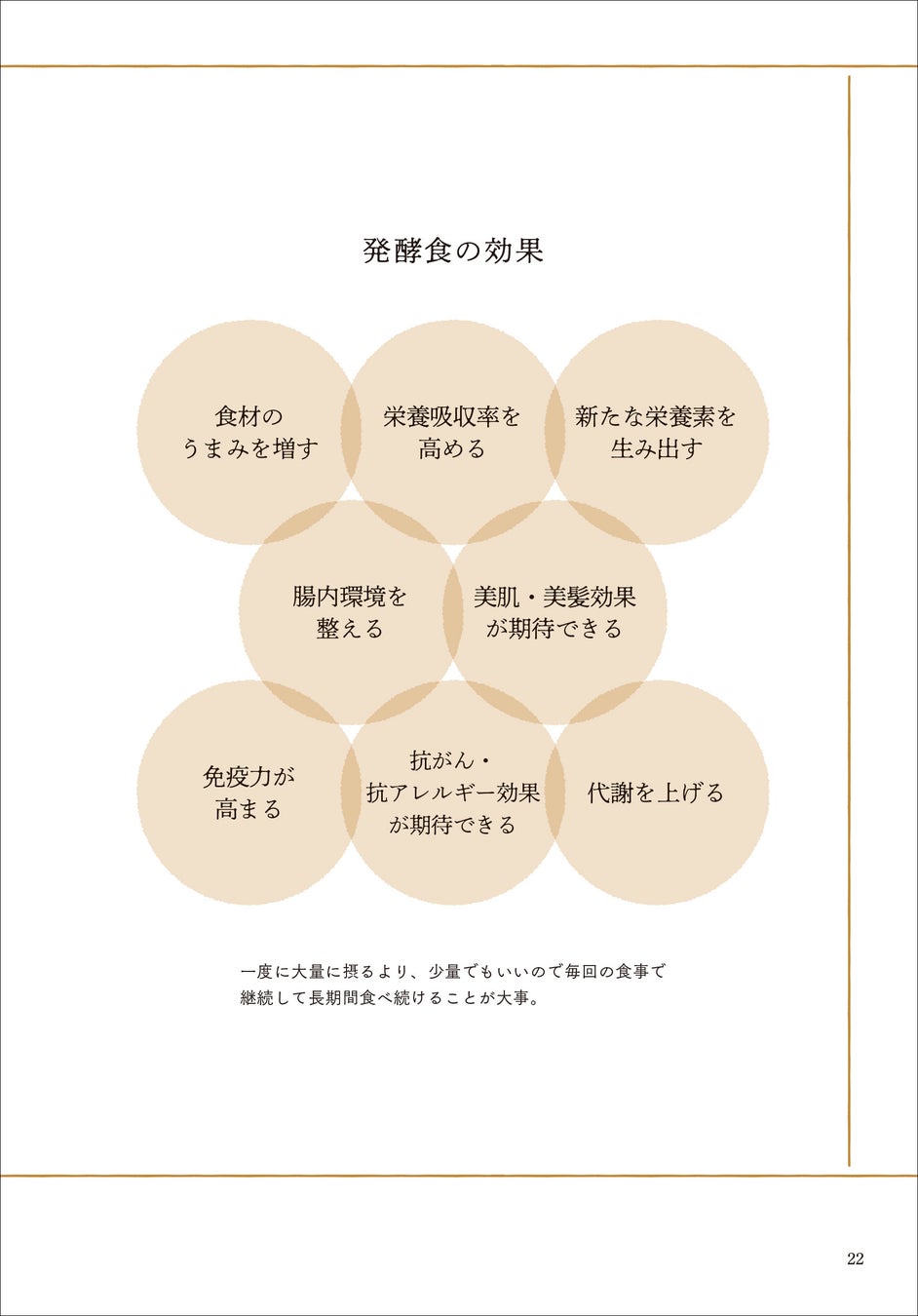 本書では、発酵食がなぜよいかについての解説のほか、普段からなじみのある料理に、ちょっと発酵食品を加えるだけで発酵食になる、お手軽レシピを多数掲載。