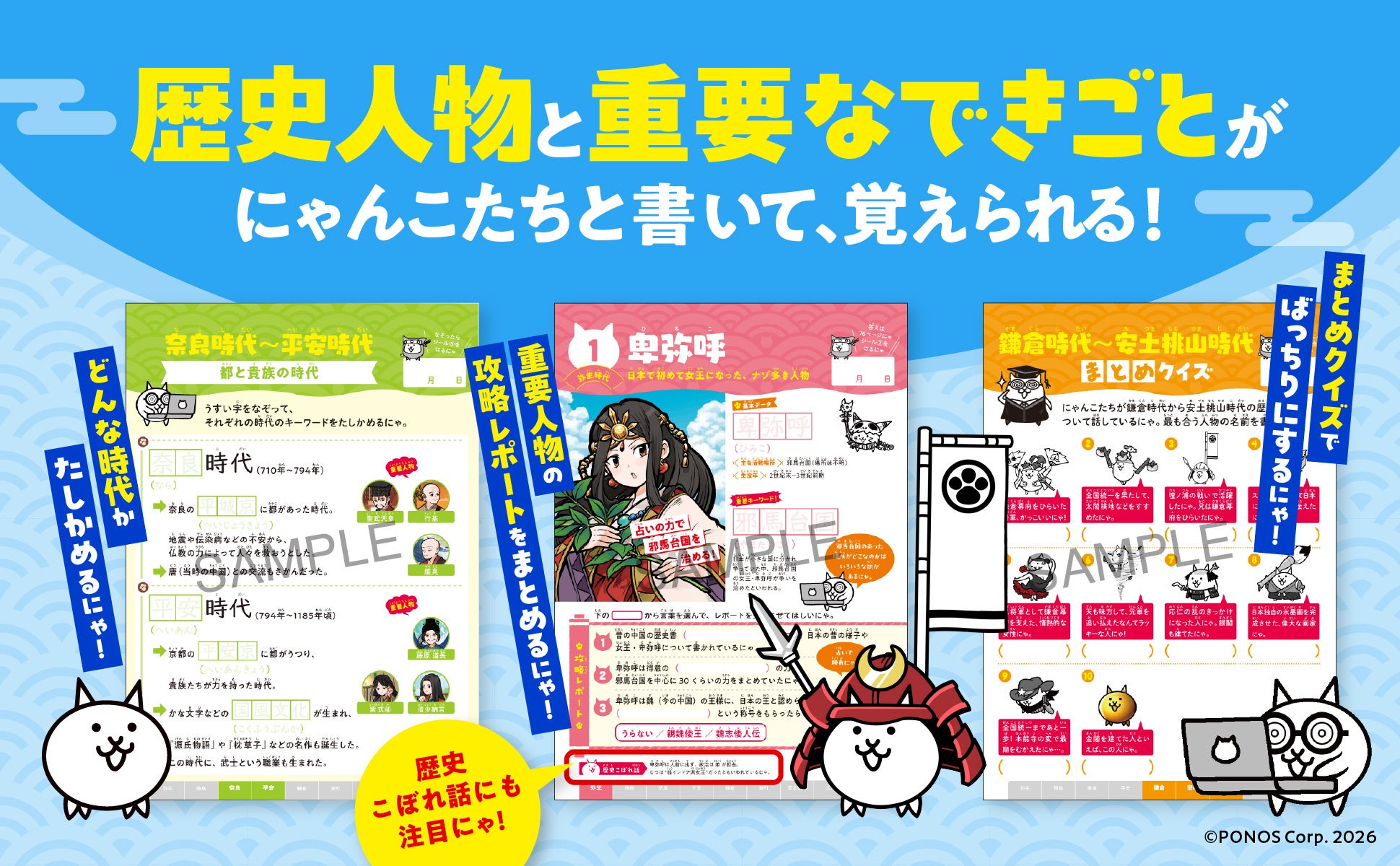 卑弥呼から平塚らいてうまで、51人の偉人をマスター! 『にゃんこ大戦争ドリル 歴史人物とできごと』2026年4月6日(月)発売