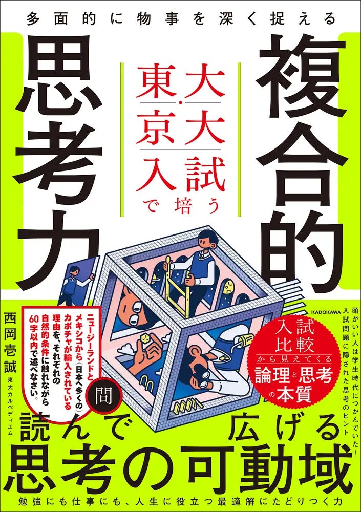 株式会社KADOKAWA(本社:東京都千代田区、取締役 代表執行役社長 CEO:夏野剛)は、2026年4月21日(火)に、東京大学・京都大学の入試問題を通して「どう考えるか」を鍛える新刊『東大・京大入試で培う 多面的に物事を深く捉える複合的思考力』(著者:西岡壱誠/東大カルペディエム)を刊行します。