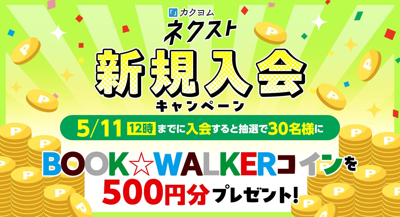 キャンペーン期間中に、カクヨムネクストへ新規入会した方の中から、抽選で30名に電子書籍ストア「BOOK☆WALKER」で使えるコイン500円分をプレゼント!