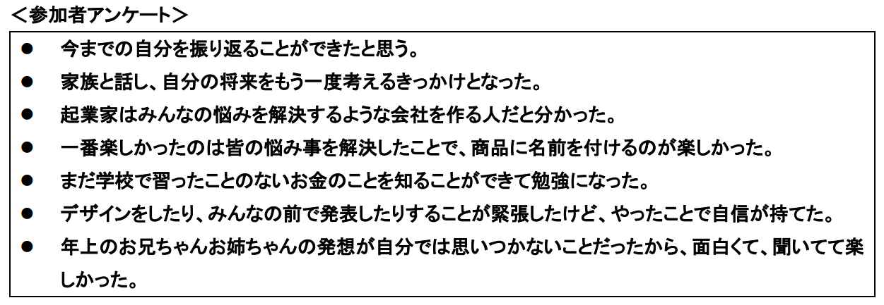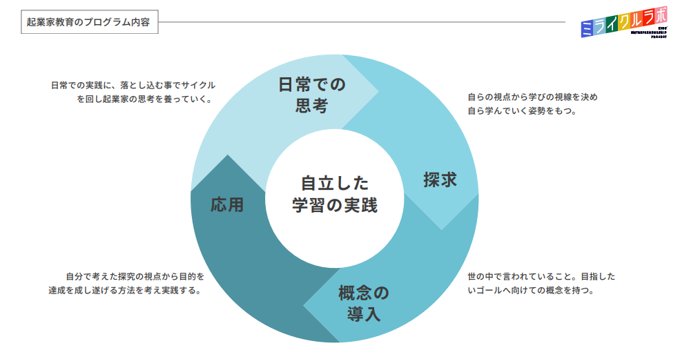 「ミライクルラボ」は、小中学生向け、起業家教育プログラムを提供し、自ら考えた事業の立ち上げ体験を通して、子どもたちの未来に「起業」という選択肢を増やすお手伝いをしています。