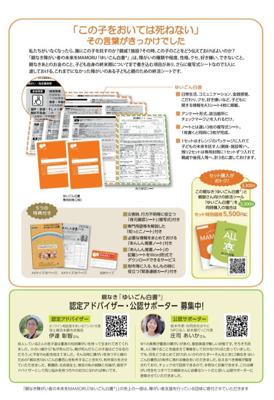 「この子をおいては死ねない」その言葉がきっかけに開発した『ゆいごん白書®』シリーズ10作目。障がいのある子どもの「親なきあと問題」「老障介護問題」の一助となる「終活キット」、その誕生秘話とは──