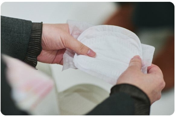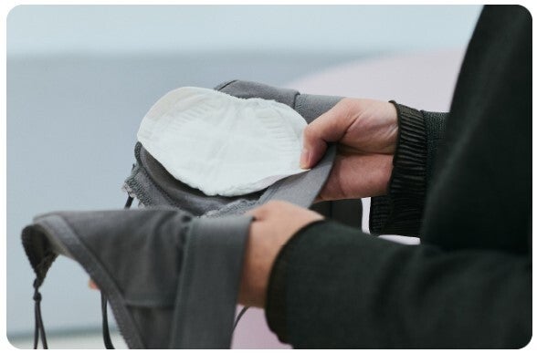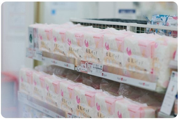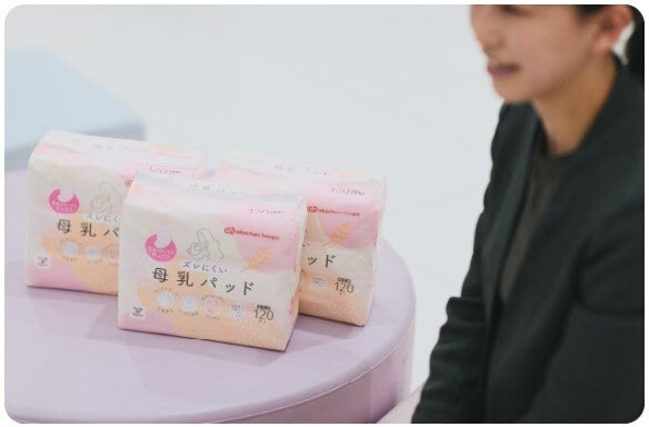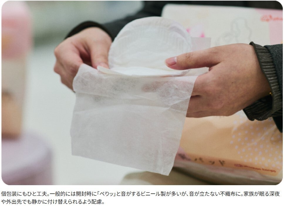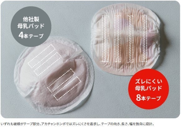 お客様から支持されているのが、「ズレにくさ」。下着をめくって授乳したり、動いたりすることでどうしてもズレやすくなってしまうため、検証を重ねて行き着いたのが「8本テープ」仕様。