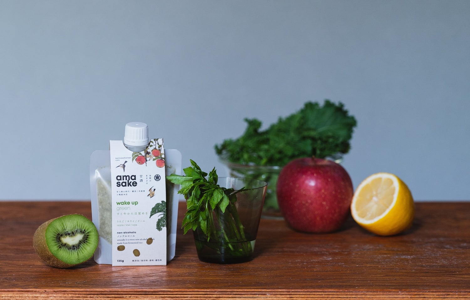 「飲む点滴」とも呼ばれるあまさけの滋養と、野菜・果実の恵みを活かしたスムージーを合わせて、素材感ある軽食として仕上げました。ノンアルコールで、砂糖・香料・着色料・保存料、いずれも無添加です。