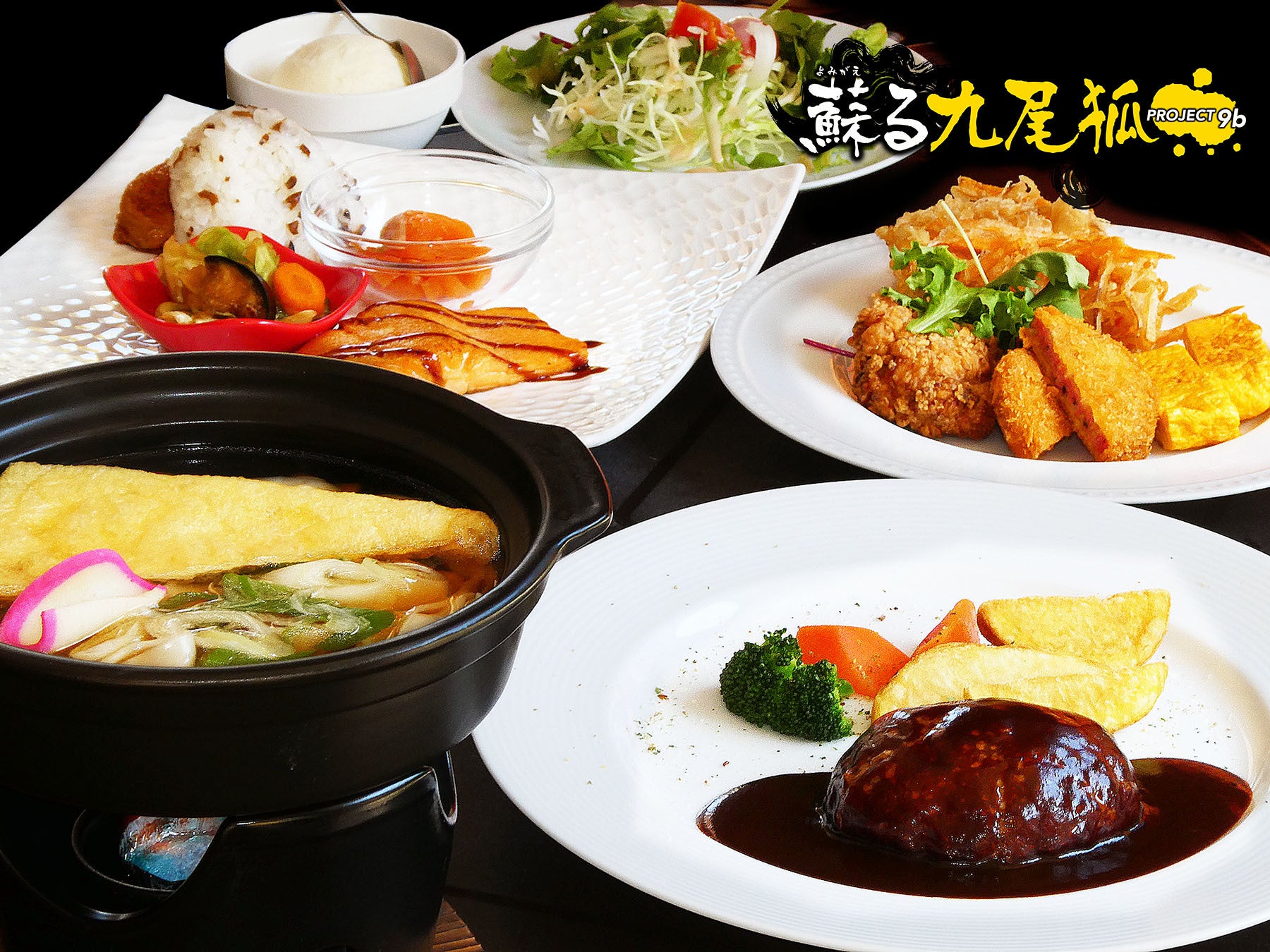 九尾の狐弁当は、九尾の狐に因んで九つの料理を弁当に詰めました。