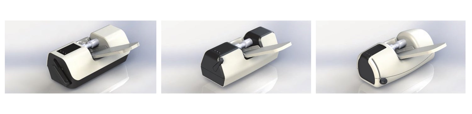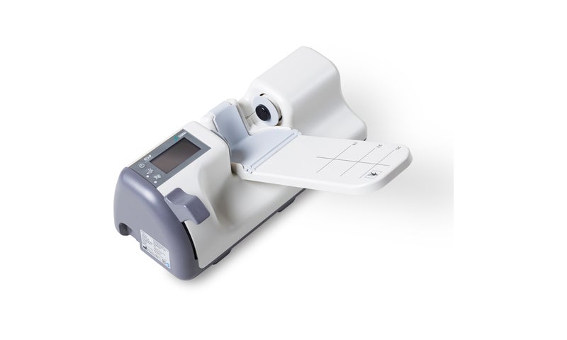 小型・軽量で容易に持ち運びができる、超音波骨密度測定装置(医療機器)。