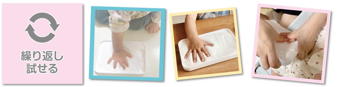 「ぷにっとおててメモリー」はただ手形・足形の形を残すだけではなく、 赤ちゃんの手肌の感触を残す商品です。