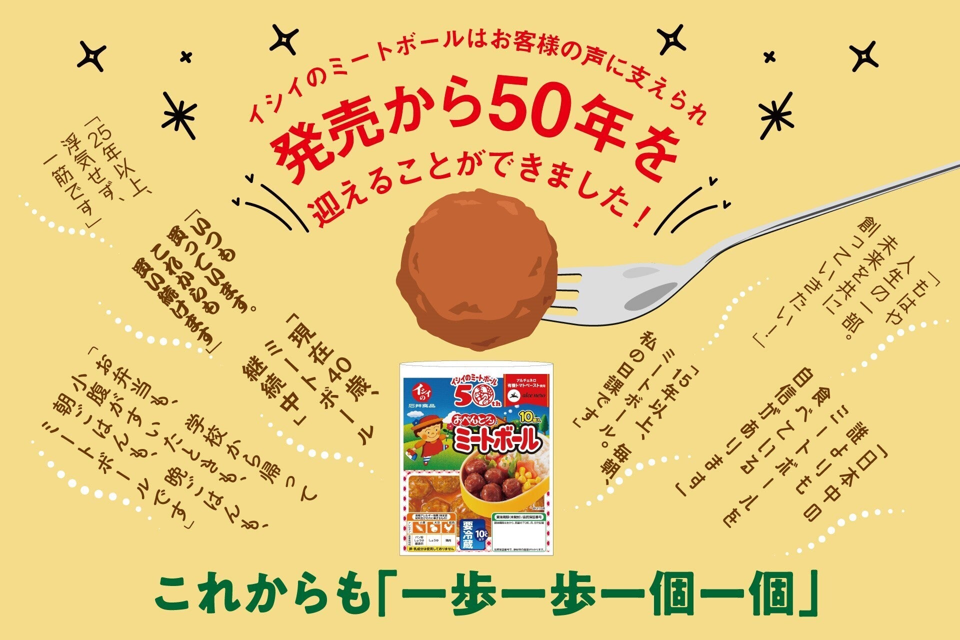 イシイのミートボール誕生50年で累計50億食販売!知られざる誕生逸話「10粒直径約2.5センチのミートボール」無添加調理に秘められたホンキの理由。そしてお客様へ感謝の想い