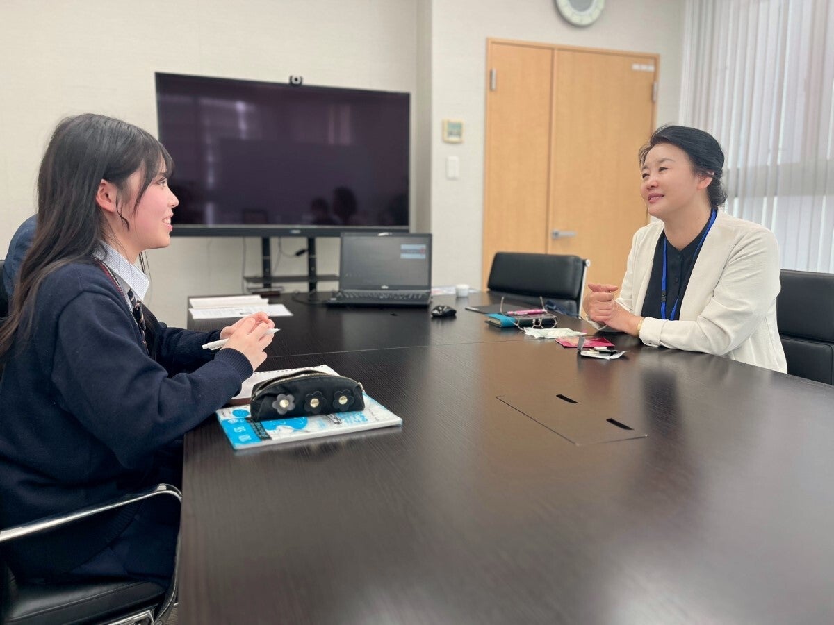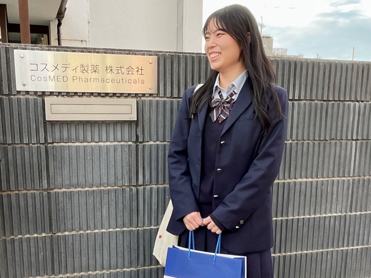 「総合的な探究の時間」の探究活動としてコスメディ製薬に取材を申し込む。