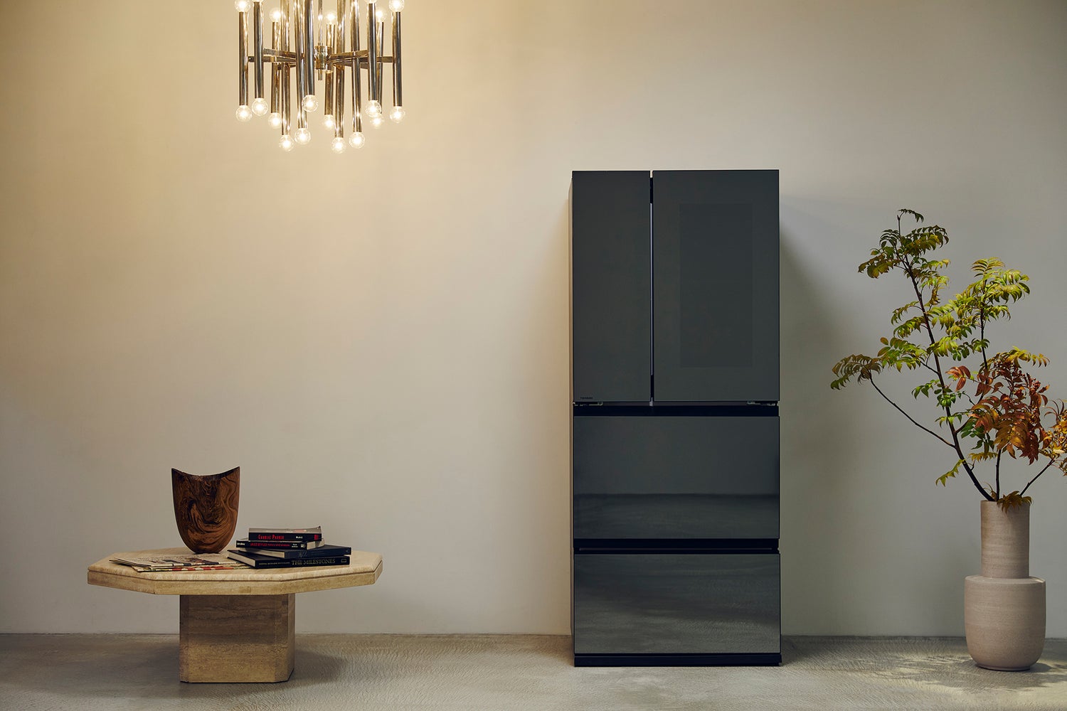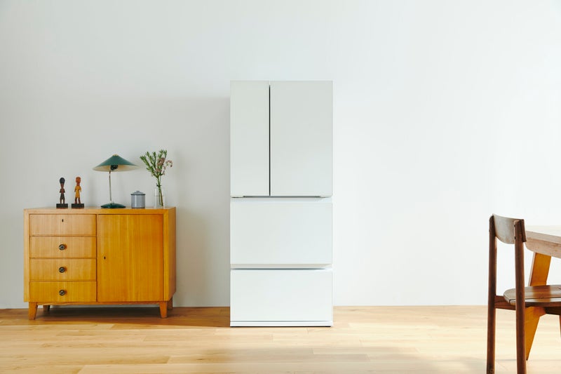 すべての寸法を人のからだのサイズに合わせて設計した、あたらしいかたちの「4ドア冷凍冷蔵庫」です。暮らしの中で気持ちよく使えることをいちばんに考えました。