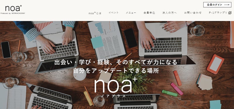 「noa+(ノアプラス)」は、学生~20代の若手社会人を対象とした新たなカタチのキャリア支援サービスであると共に、そこで自ら学ぶ受講生と、成長意欲の高い企業とが出会うマッチングサービス。これからの経済を支える若者・企業の成長を支援していくプロジェクトです。https://noaplus.workacademy.com