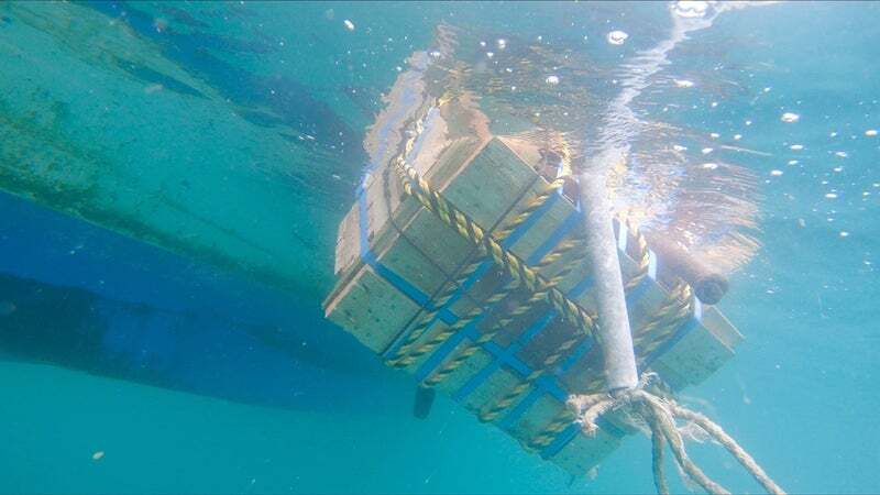 地上に比べて温度変化や紫外線が少ない海中は、自然発生する海「ゆらぎ」が瓶を動かし熟成を促進させます。