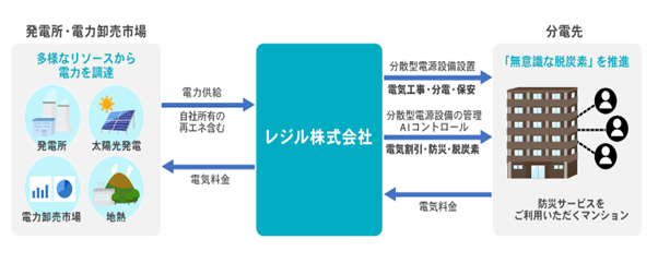 既存マンションに初期費用ゼロ円で太陽光発電設備と蓄電池を設置し、停電発生時にマンション共用部の動力設備(給水ポンプ(水道やトイレ)、エレベーターや立体駐車場等)へ、発電・貯蓄した電気を供給できる仕組みを提供するサービスです。