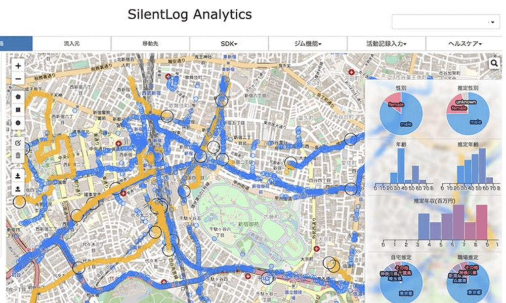 高精度な位置情報を最短3-5秒毎に取得し、多様な推定項目や分析することができます。機械学習の精度も高くなっており「属性」「行動種別」「行動範囲」などをデータ化し、ユーザーの特徴や行動を明確にします。さまざまなデータ提供方式も用意されており、可視化やペルソナ作成にも活用可能です。