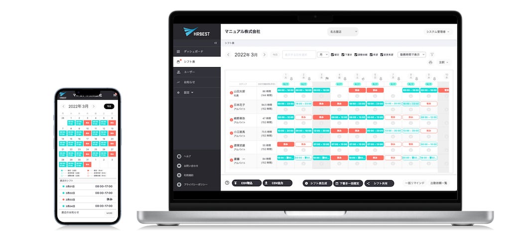 シフト自動作成AI「HRBEST(ハーベスト)」
