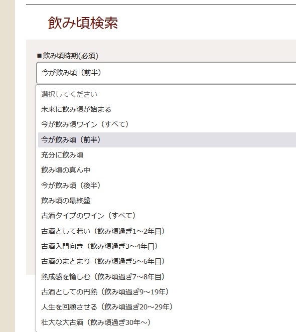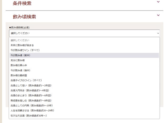 ワインの新しい選び方『未来に飲み頃中のワイン検索機能』